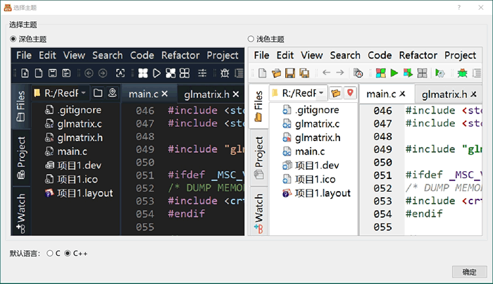 1) 首先启动RedPanda C++,会弹出下图的窗口,保持默认即可,点击“确定”: