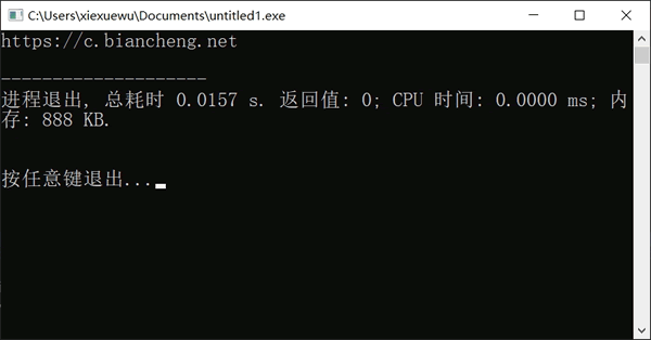5) 弹出下图中的界面,程序成功输出了“https://c.biancheng.net”: