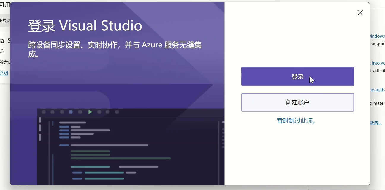 1、软件安装重启好电脑后,我们点击软件就会出现登录界面,要求我们登录微软账户。社区版本完全免费,我们可以直接使用微软账号登录,或者我们可以选择“暂时跳过此选项”获得30天免费使用权,30天后就需要重新登录了。