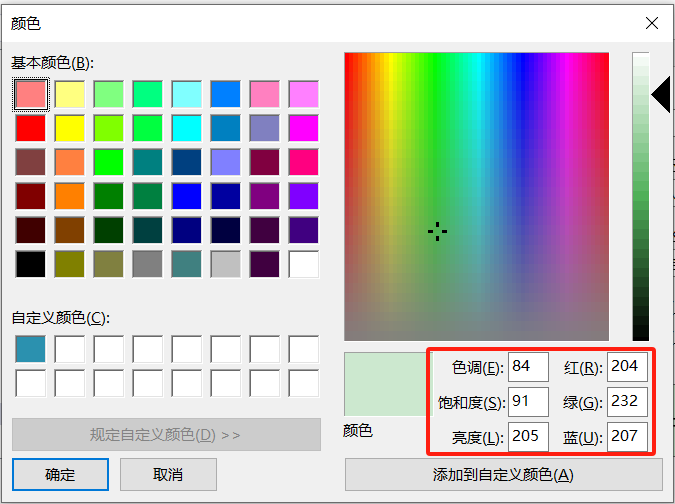 我们将下方的各项数值输入,点击“添加到自定义颜色”----->最后点击确认,就可以获得鹏哥独家配置的护眼色啦!