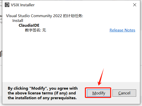 安装完成,会看到如图,点击“Modify” 后等待安装。