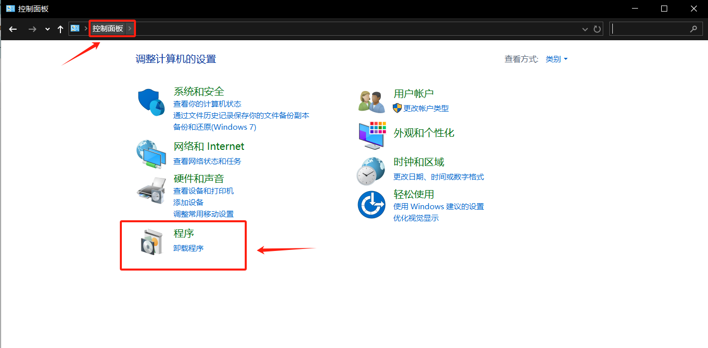 3.卸载旧版本,开始菜单---->找到“控制面板” ---->点击“卸载程序” ---->移除旧版Visual Stdio软件