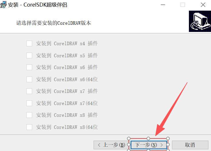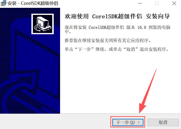1)下载文件夹内名为“CorelDraw.exe”的安装包。2)点击“下一步”: